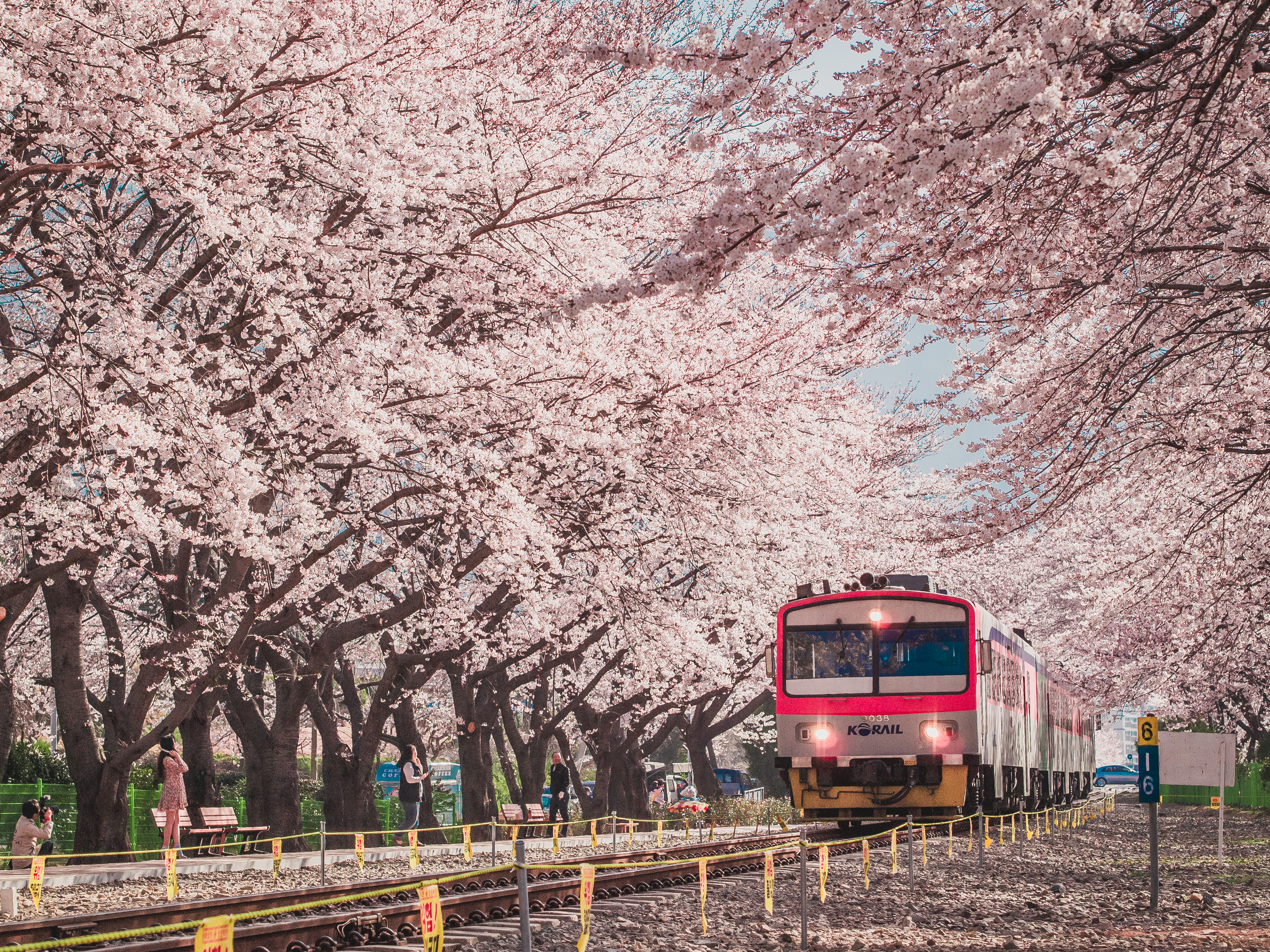 기차와 벚꽃이 함께 어우러지는 전국 대표 사진 명소입니다.