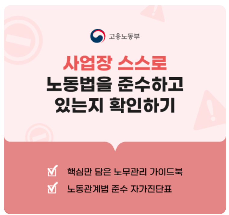 고용노동부 홈페이지 통해서 '최저임금 모의계산', '퇴직금 계산기', '임금명세서', '출퇴근기록관리', '근로계약서' 등을 바로 확인하실 수 있습니다. 또한 구인구직 등 고용분야 민원, 임금체불 등 노동분야 민원 등도 접수를 받고 신청할 수 있습니다. 아래의 이미지를 선택하면 '고용노동부 홈페이지'로 바로 이동합니다.