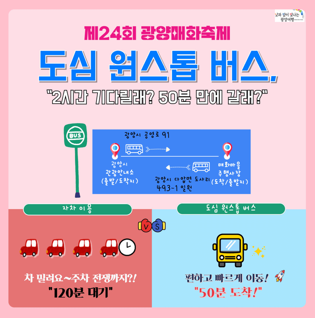 | 1구간 / 둔치주차장 <-> 매화축제 행사장 / 평일 주말 왕복 |