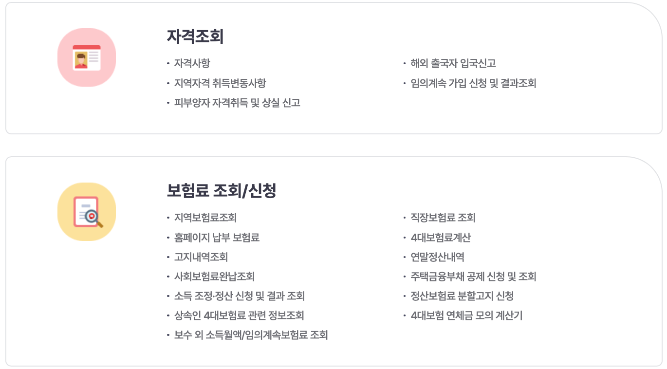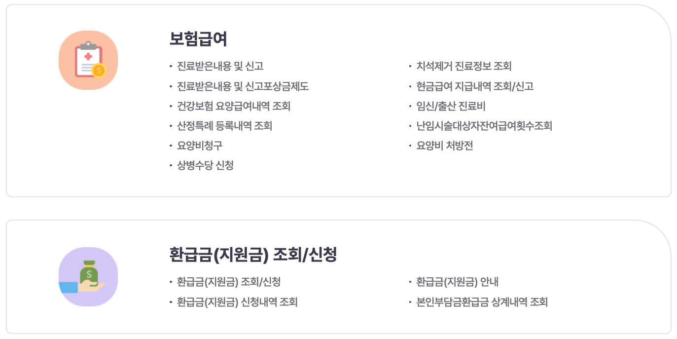 < 국민건강보험공단 개인 자주찾는 서비스 >