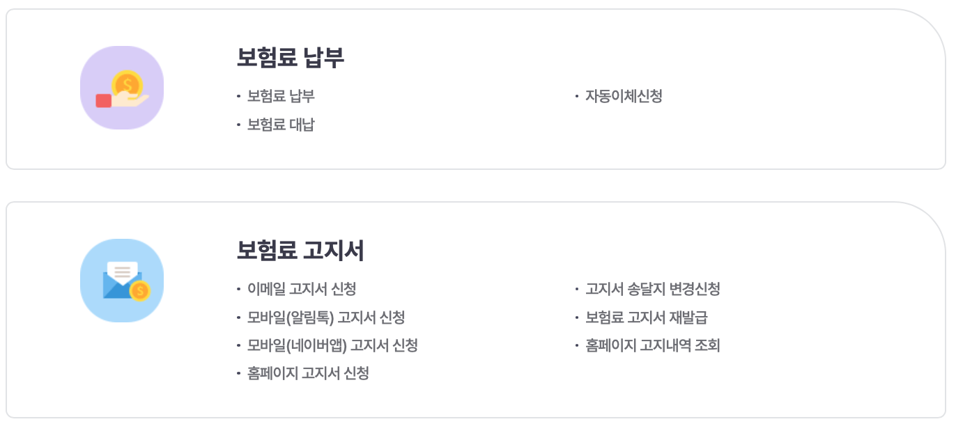 | 환급금 조회/신청 | 보험료 조회/납부 | 보험료 계산기 |