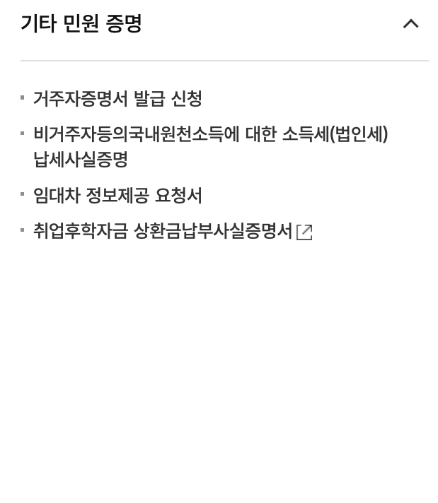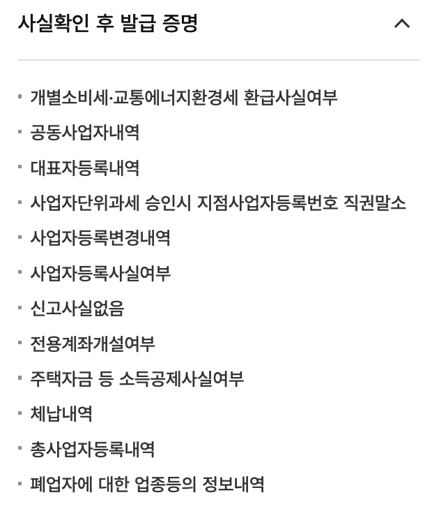 < 국세청 홈택스 : 증명/등록/신청 >