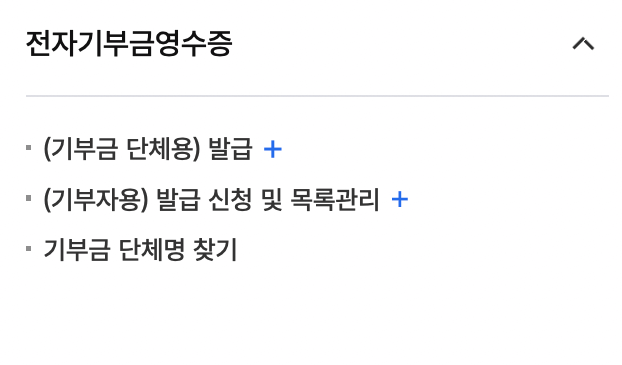 | 전자(세금)계산서 수정발급 | 합계표 통계 조회 | 소비자 발급수단/전용카드 | |