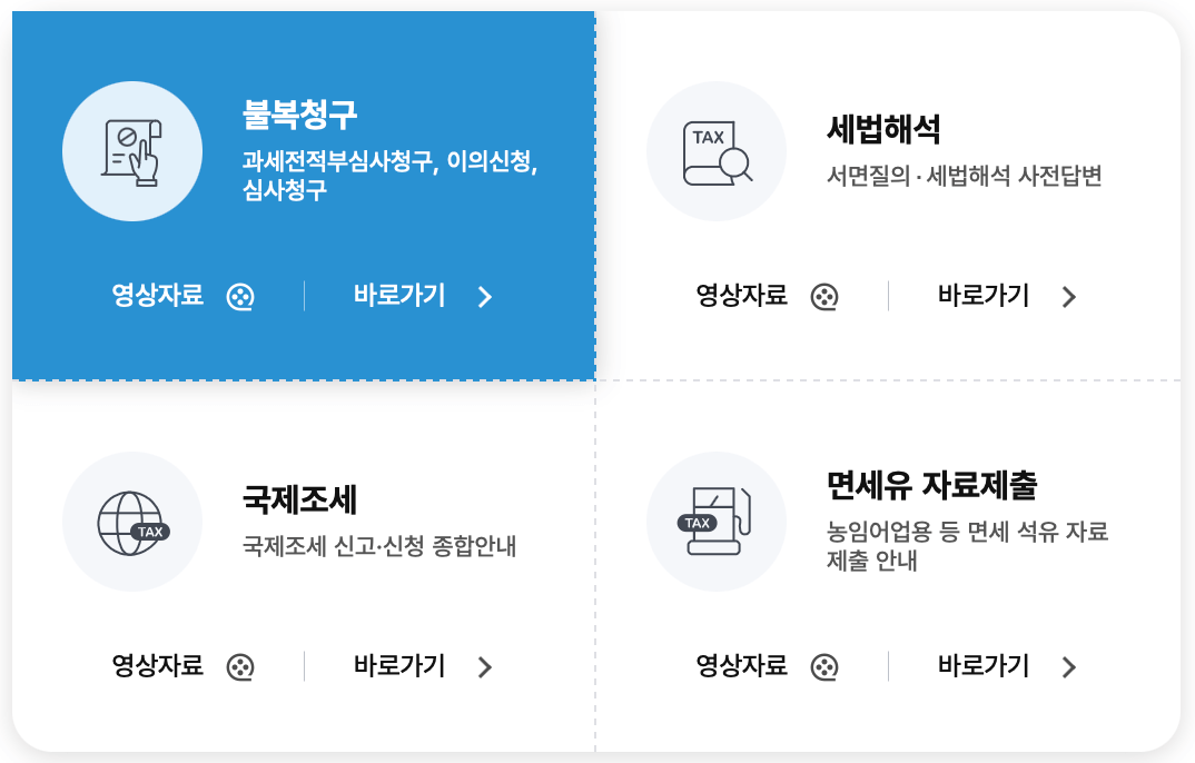 | 법인세 신고 | 원천세 신고 | 증여세 신고 | 상속세 신고 |