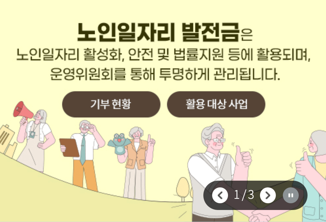 | 활동내용 : 노노케어, 취약계층지원, 공공시설 봉사, 경륜전수 활동 |