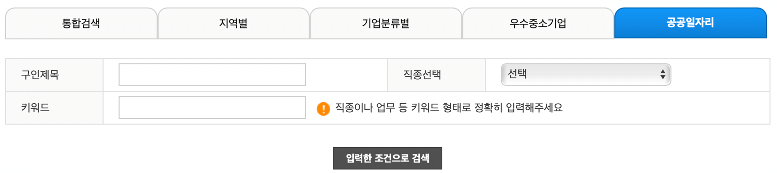 | 채용정보 | 교육훈련 | 일자리서비스 | 우수중소기업 |
