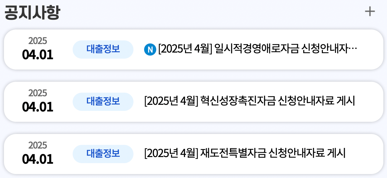 | 신용취약소상공인자금 | 2025.4.7.(월) 14시부터 ~ 예산 소진 시까지 |