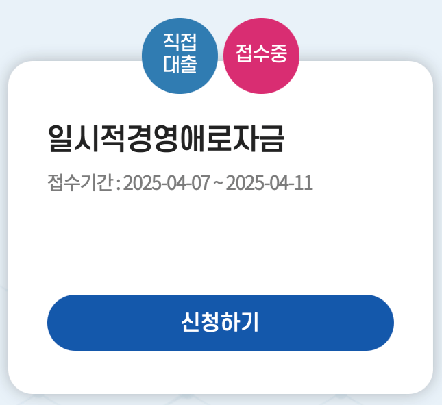 | 일반경영안정자금 | 2025.4.1.(화) 10시부터 ~ 예산 소진 시까지 |