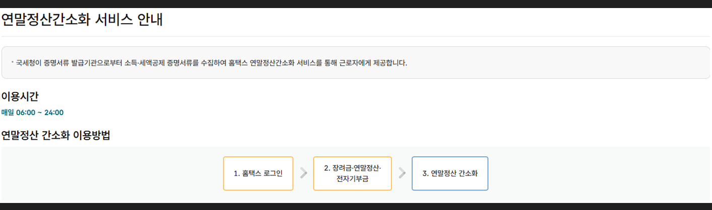 | (3) "편리한 연말정산" 코너에서 "(근로자용) 연말정산 미리보기" 클릭 |