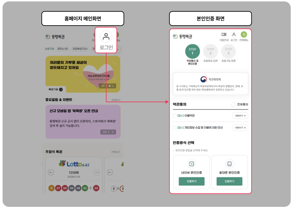 복권은 법적으로 미성년자 구매가 금지되어 있기 때문에 반드시 본인 인증 절차를 거쳐야 합니다.