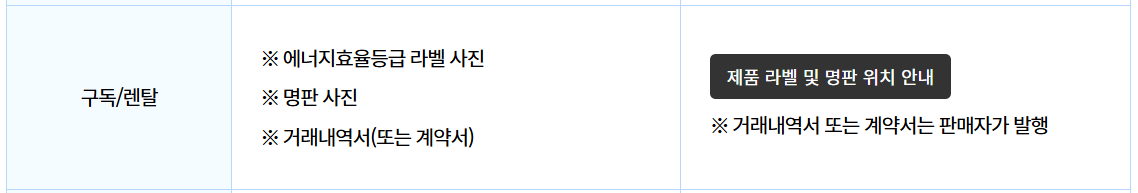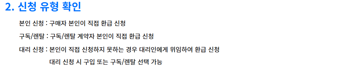 | 구독/렌탈 : 구독/렌털 제품에 대해서 구매자(계약자) 본인이 직접 환급 신청하는 경우 |