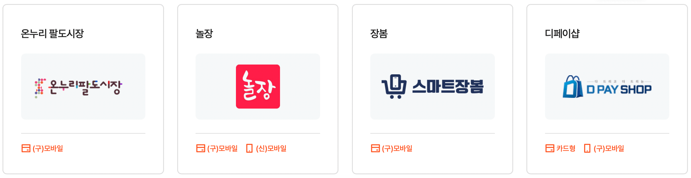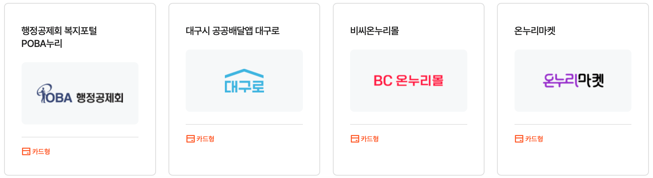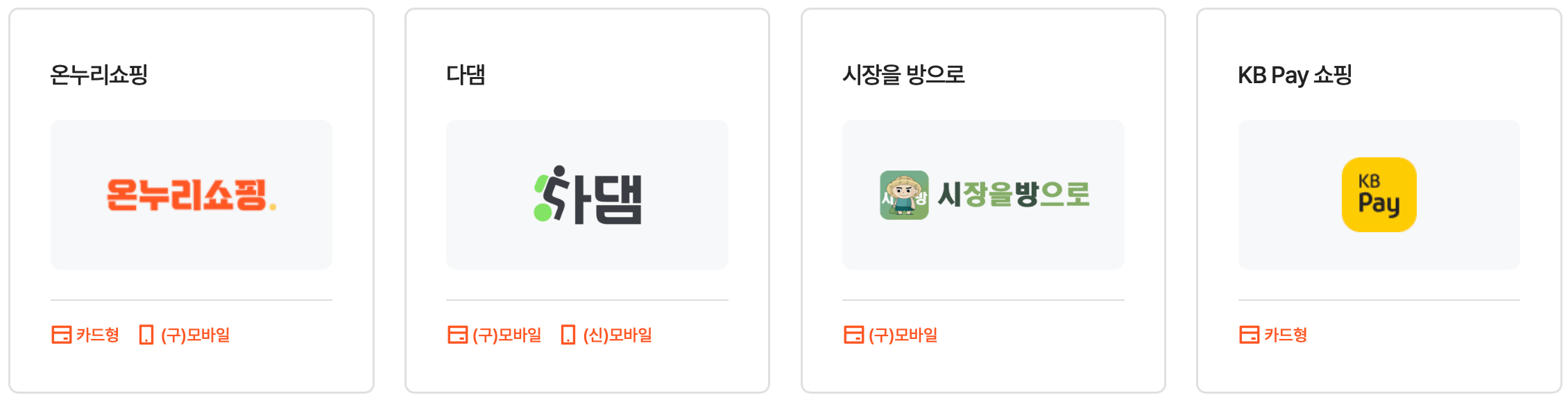 | KB Pay쇼핑 | 행정공제회 복지포털 | 공공배달앱 대구로 | 비씨온누리몰 | 온누리마켓 |