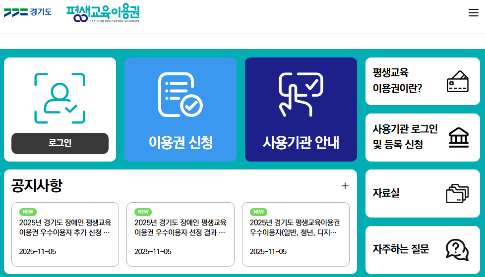 평생교육 바우처 홈페이지