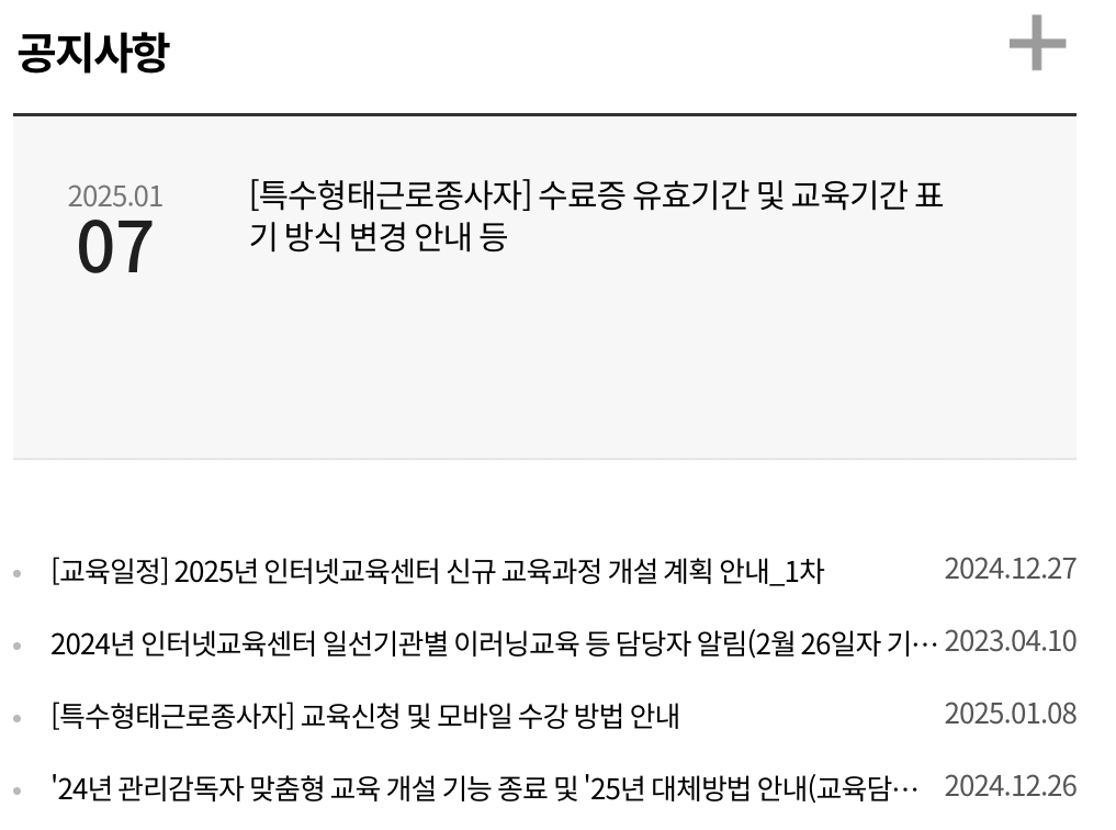 | 안전보건 중점교육 | 안전보건 기본교육 | 특수형태근로종사자 교육 |