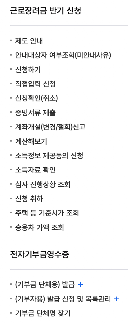 | 근로/자녀장려금 정기 신청 | 근로장려금 반기 신청 |