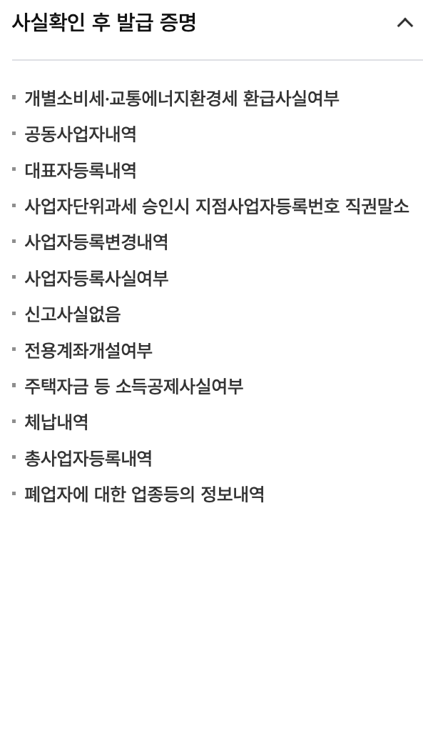 | 즉시발급 증명 | 사실확인 후 발급 증명 |