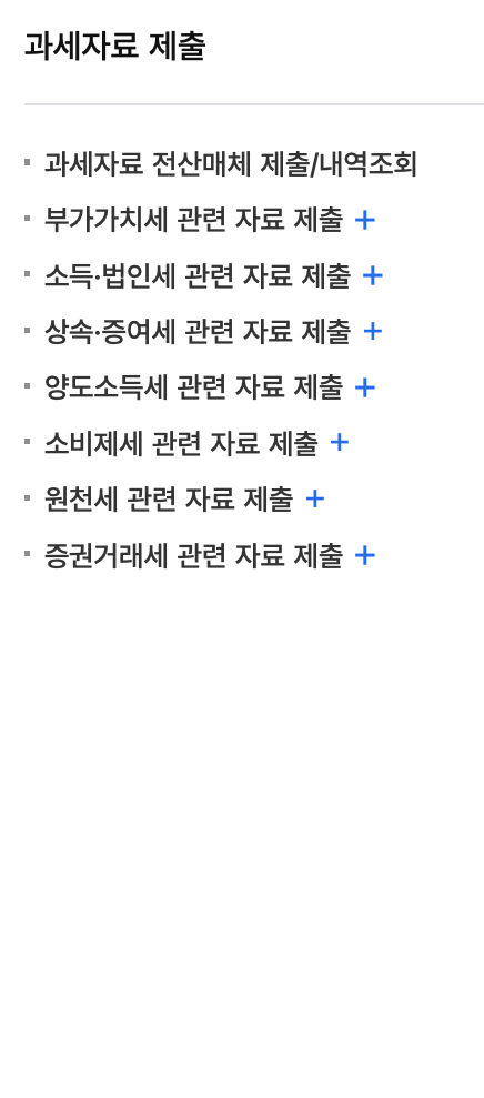 | 소득자료 제출 | 지급명세서 제출 | 과세자료 제출 |