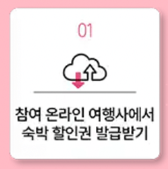 | (1) 참여 온라인 여행사에서 숙박 할인권 발급받기 |