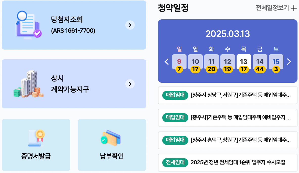 | 청약신청하기 | 청약신청하기 | 청약신청하기 | 청약신청하기 | 주택매도 신청하기 |