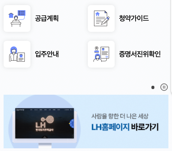 LH 청약센터, lh 청약플러스 홈페이지 통해서 임대주택, 분양주택, 토지, 상가 등에 대한 청약일정을 확인할 수 있습니다. 또한 주택 공급 공고문을 확인하실 수 있으며, 당첨자 조회도 가능합니다. 예비입주자 순회 조회 및 증명서 발급 신청도 가능합니다. 아래의 이미지를 선택하면 LH 청약센터 홈페이지로 바로 이동합니다.