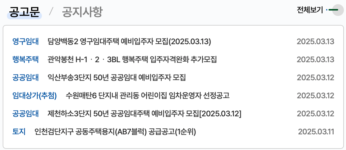 | 통합공공임대 | 국민임대 | 행복주택 | 공공임대 |